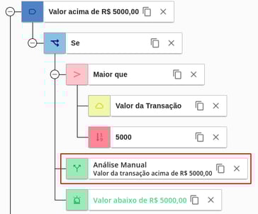 Na aŕvore de decisão, insira uma decisão de Análise Manual no ramo em que deseja fazer tratativas manuais.